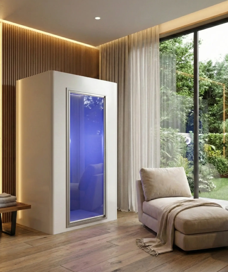 Elektrische Ganzkörper-Kälte-therapiekammer für eine Person mit einer Kälteleistung bis zu -110°. Bis zu 50 Anwendungen am Tag.