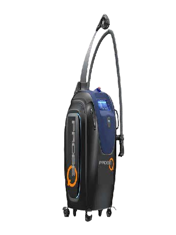 Mobiles Stickstoff-Kältetherapiegerät zur lokalen Anwendung. Der kühlende Luftstrom ermöglicht eine punktuelle und kontrollierte Dosierung bis -160°